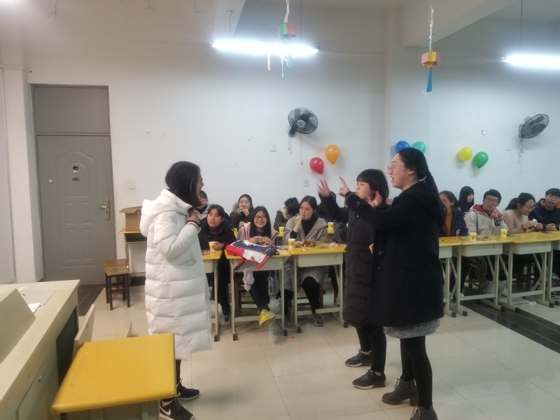 班会开始之前,班主任夏老师就学习和生活两方面对同学们提出了新学期的希望和要求。时光飞逝,转眼已是大二的下半学期,学习与就业的压力越来越重,希望同学们继续保持良好习惯,认真学习,遵守纪律,以梦为马,不负韶华。与此同时,也应拥有良好的作息习惯,预防流感。接下来,辅导员柴老师强调和规范了各项规章制度,欢迎同学们咨询心理学考研的相关问题。各班委回顾了上学期的工作情况,并简述了以后的工作计划,呼吁全班同学为更好地建设班级贡献出自己的力量。随后,在班委的带领下,我们开展了听歌识曲、你演我猜、你好老同学、抢红包猜灯谜的游戏,所有同学分为五组,每个游戏过后按照排名累计加分,四轮过后分数高的小组获胜。每个人都积极融入其中,尤其是你演我猜环节,表演同学夸大的动作,神奇的脑洞引起大家阵阵笑声。班委们还精心准备了汤圆,甜甜的馅儿都是KF1605班满满的温暖与爱。