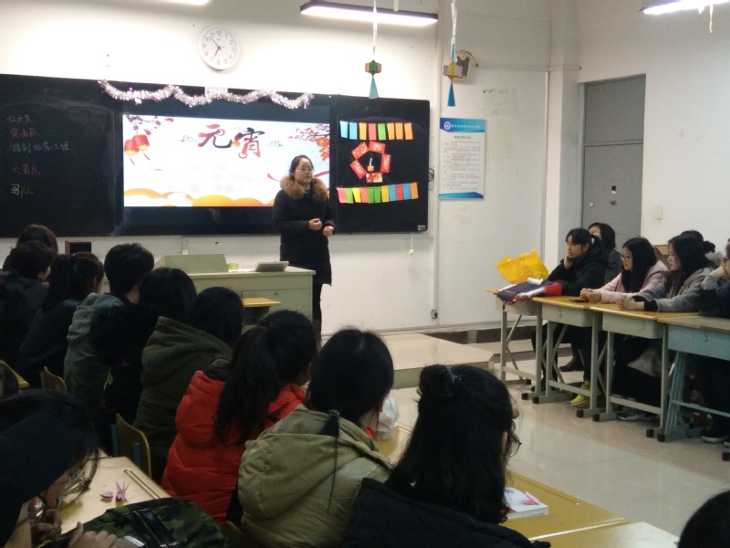 元宵节是春节之后的第一个重要节日,是中国亦是汉字文化圈的地区和海外华人的传统节日之一。正月是农历的元月,古人称夜为“宵”,所以把一年中第一个月圆之夜正月十五(即今年的3月2日)称为元宵节。为了让身处异乡的同学们感受节日的温暖,在愉快的氛围中了解元宵节的文化内涵,KF1605班于2018年3月1日晚6点30分在博雅楼3305开展了元宵节主题班会,由班主任夏宝妹老师主持。