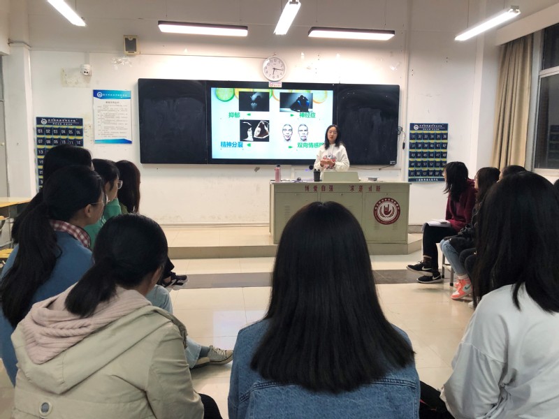 活动以同学们自编自导的心理情景剧开始,展现了一例因情感问题而选择自杀的危机案例,引发同学们的学习兴趣;接着,主讲人介绍了引起个体产生自杀倾向的心理因素和常见危机个案类型的表现形式。最后,讲解了心理危机干预的工作流程。