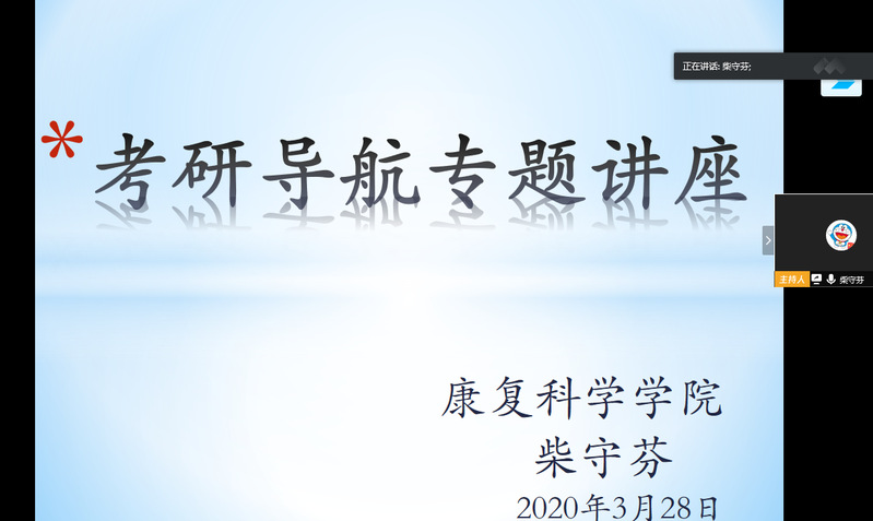 疫情防控,开学延期,在这个漫长的寒假里全民居家隔离,少出门少聚集,当全民都在为新型冠状病毒性肺炎的防控齐心努力的时候,康复学子的学习之旅依然在前行。为了进一步提升Bevictor伟德官网员工的考研热情,明确考研目标,掌握考研技巧,了解考研知识,Bevictor伟德官网于3月28日晚八点依托腾讯会议平台举行了考研导航讲座。公司有意向考研的各年级同学参加了此次线上讲座。本次讲座由公司辅导员柴守芬老师主持。