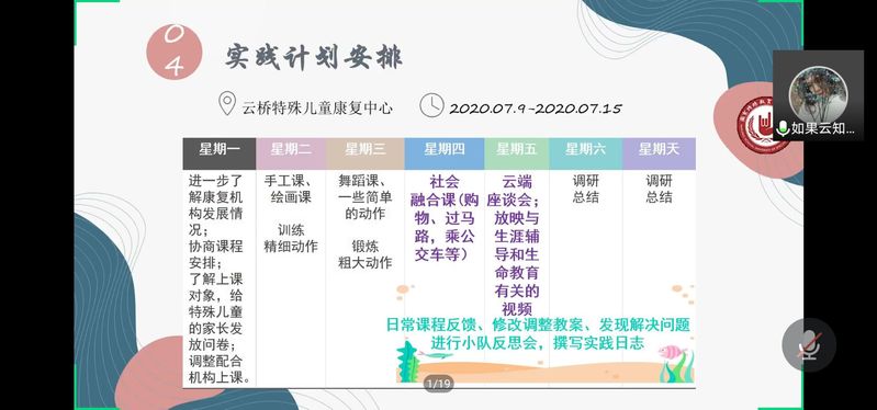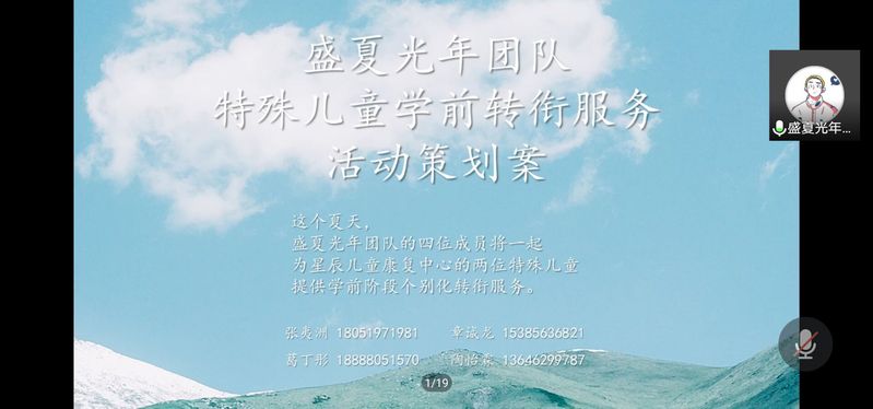 15支候选团队包括“爱无止境”等10支线上团队,及“与星同行”等5支线下团队。15支团队各具特色,每支团队都展现出他们的风采,各种奇思妙想层出不穷。有的打算带着特殊儿童感受云旅游的魅力,有的计划制作旨在普及康复知识的线上科普视频,有的是侧重进行线上康复课程,有的计划进行关于地摊经济的调研。