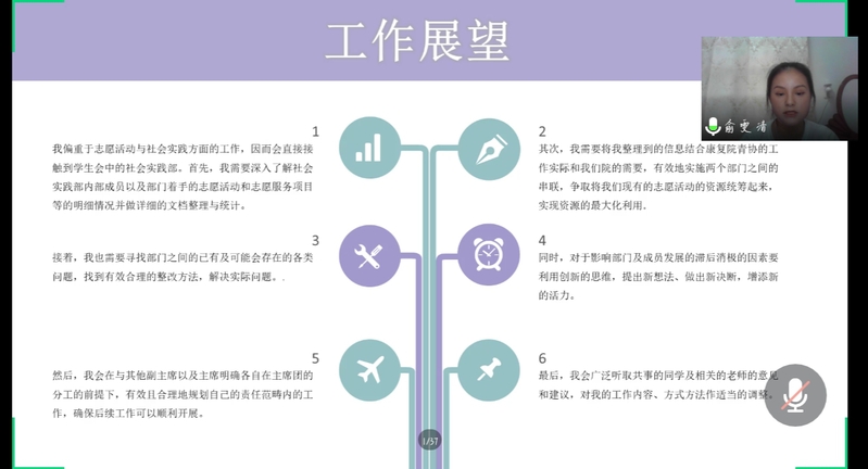 7月8日,康复公司员工会通过腾讯会议召开第18届员工会竞选大会。公司党总支书记吴洪菊、党总支副书记吴填、团总支书记吴冠磊、辅导员王雪梅老师、柴守芬老师、闫明举老师,第17届全体员工会全干部及100多名员工代表参加会议。大会开始前,主持人宣读了唱票人、监票人、计票人名单,并宣读竞选的细则。