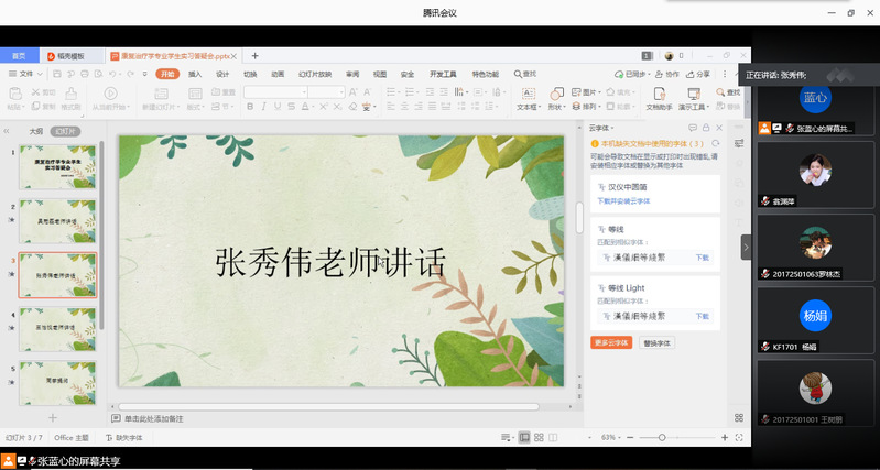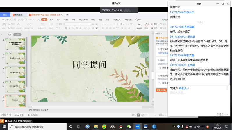 线上座谈会的召开,有助于同学们明确目标,端正态度,为实习的顺利进行打下基础。