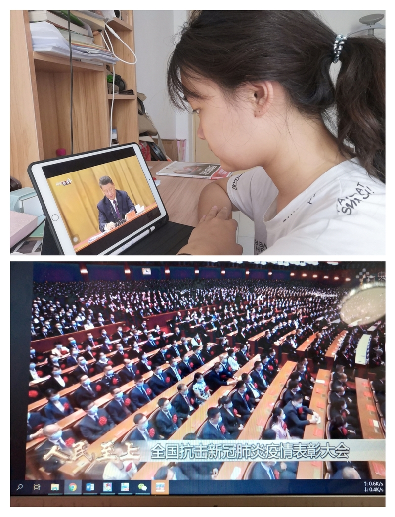 青春因磨砺而出彩,人生因奋斗而升华。通过收看全国抗击新冠肺炎疫情表彰大会,党员们纷纷表示,聆听了习近平总书记的讲话,深受鼓舞,倍感振奋。此次抗击新冠肺炎疫情取得的成功充分展示了中国力量、凝聚了中国精神、彰显了中国制度优势。要弘扬伟大抗疫精神,向抗击疫情过程中涌现出的先进个人、先进集体学习。以抗疫英雄为榜样,学习他们对党忠诚政治品格和责任担当,学习他们舍己为人、无私奉献的高尚品质,要在今后的学习、工作中发挥党员的先锋模范作用,以实际行动践行初心使命,为实现中华民族的伟大复兴贡献青春力量!(柴守芬)
