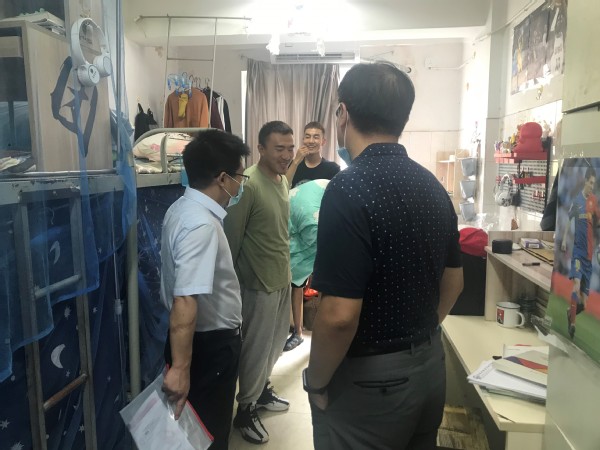 为了解员工宿舍情况,及时解决员工问题,13日下午14:00公司经理张茂林、公司党总支书记吴洪菊、副书记吴填、辅导员老师一行来到1幢、4幢、9幢、19幢员工宿舍查看返校后宿舍情况,并和报到员工进行慰问、交流。