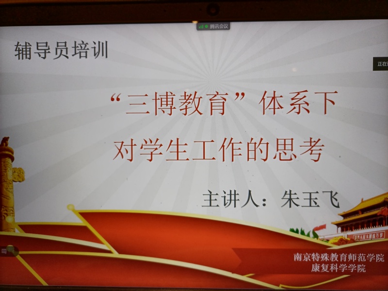 朱玉飞副书记的主题讲座分为三个部分:第一,“三博教育”体系的思考。第二,辅导员队伍建设的内涵与思考。第三,班级管理的方法。朱玉飞副书记结合自己的工作经历及“三博教育”,深入浅出地讲授员工工作品牌建设中的“五个突出”和“五个注重”,阐释了“一二三四五”员工工作思路。新时代辅导员的角色定位,要扮演好学习成才指导者、人生发展引导者等四个角色。对于如何做好班级管理,辅导员老师需要加强班级文化建设和班干部队伍建设,同时要有创新意识、民主意识等四大意识。