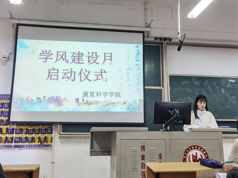 院员工会组织部陈琦同学介绍了此次学风建设月的相关活动安排。员工会将配合公司做好读书活动、师范生基本功训练、师范生无生试讲比赛、康复医学技能训练、教资面试辅导和职业生涯规划讲座等活动。