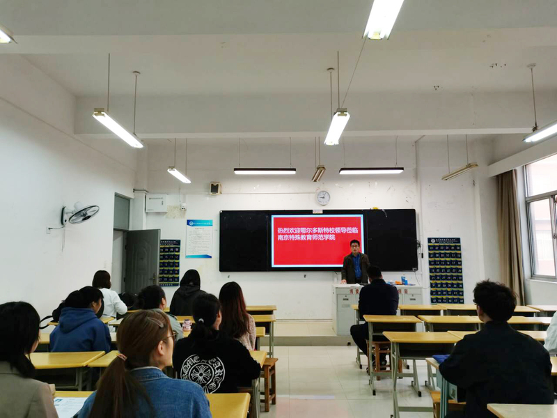 11月8日上午,鄂尔多斯市人事局秦小军科长等一行四人在博雅楼3316教室举办鄂尔多斯特校专场招聘会。校学工处处长章小军、公司党总支书记吴洪菊、特殊教育师范公司党总支副书记朱玉飞及18名2021届毕业生参加宣讲会。