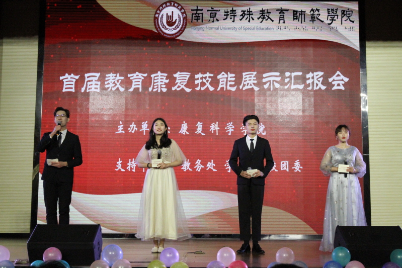 汇报会在《飞向春天》的欢快舞蹈中拉开帷幕。今年是陈望道翻译《共产党宣言》100周年。朗诵《信仰的光芒》以纪念《共产党宣言》中文首译本出版100周年为主题,讲述了共产党人为人民谋幸福的坚定信仰,展现了南京特师学子以特教事业己任的使命和担当。三字一画是师范生的基本功。教育康复学专业员工带来了《三字展示》。钢笔字刚劲有力,黑板字板书规范,毛笔字美观洒脱,让现场的领导、老师和同学们真切地感受到了中华传统文化的魅力。19级教康专业毛天琦《以德育人,以爱铸魂》表达了立志成为“四有”好老师的决心和勇气。助人自助,乐人乐己。石珍珍等10名大一新生带来的情景剧《我是你的眼》从侧面反映了视障老员工成长的艰辛,体现了当代老员工对特殊群体的关心和帮助。语文微课展示了师范生利用所学知识开展公司产品活动的能力。何远思等同学演绎的《明天你好》,透露着浓浓的青春气息。钢琴独奏《River flows in you》给人以美的视听享受。江苏省第十五届老员工职业生涯规划大赛获得者韦晓童分享了《大龄心智障碍者人士辅助性就业工作者》的生涯故事。医教结合的理念下,儿童康复事业的发展离不开康复医学的支持。17级康复治疗学专业马庆、董祥鹤通过《儿童康复技能展示》为现场的师生演示了儿童康复中的评估与训练的步骤、方法和技巧。