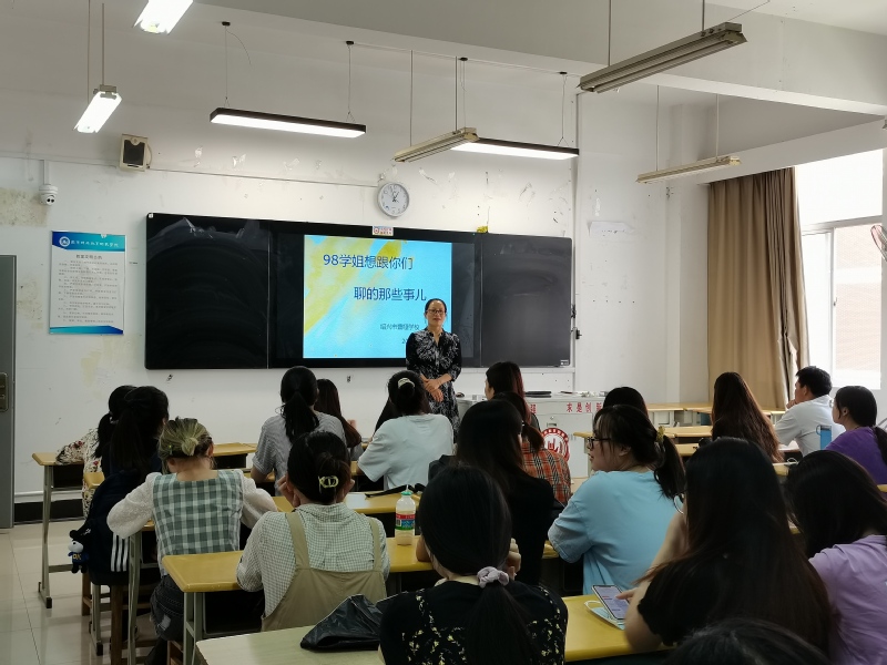 冯老师首先向大家介绍了大类招生后专业分流的背景及意义,并向同学们讲解,更好地进行复合型人才培养的方式方法。她结合绍兴市聋哑公司的现状向同学们分析了康复专业的前景、发展潜力,鼓励同学们积极上进,努力学好专业知识,多多在实践中提升康复技能,多学习他人的经验,树立正确的发展观。其次,在互动交流环节,同学们积极提出问题,冯老师也耐心地为学弟学妹们进行答疑。