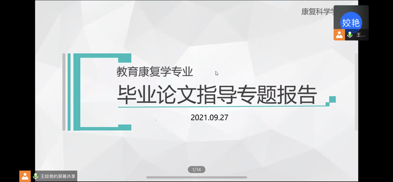 针对教育康复学专业员工,王姣艳老师从毕业论文的规范要求、进程安排、质量提升和材料归档四个方面展开,以公司毕业论文管理规范办法为参照,结合往届毕业论文常出现的问题,对毕业论文的选题、开题报告、中期检查、论文答辩,尤其是论文的结构,研究方法、研究结果和讨论等部分撰写的注意事项、格式问题等进行了讲解,并提供了示例。