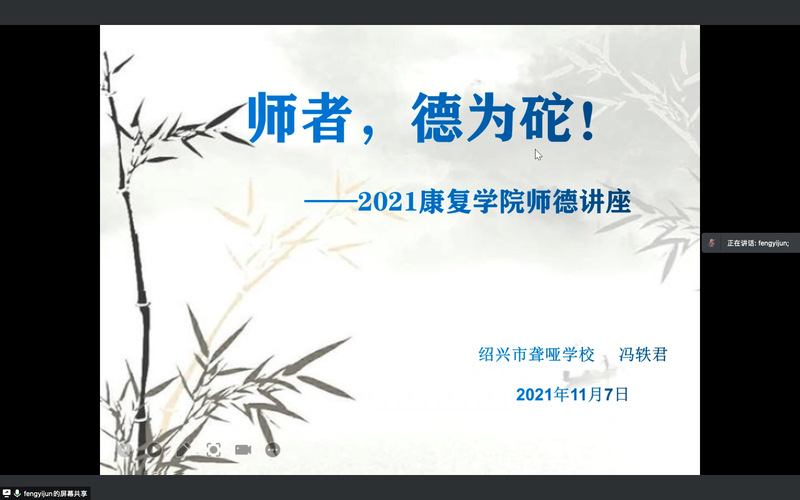 为深入贯彻落实习近平总书记关于教育的重要论述和全国教育大会精神,加强师德师风建设,培育员工党员对教师职业的认同感和社会责任感,11月7日晚,Bevictor伟德官网在线上开展师德师风专题教育讲座,公司98级优秀员工冯轶君应邀为全院预备党员及入党积极分子作题为《师者,“德”为坨》的报告,会议由员工支部书记王雪梅老师主持。