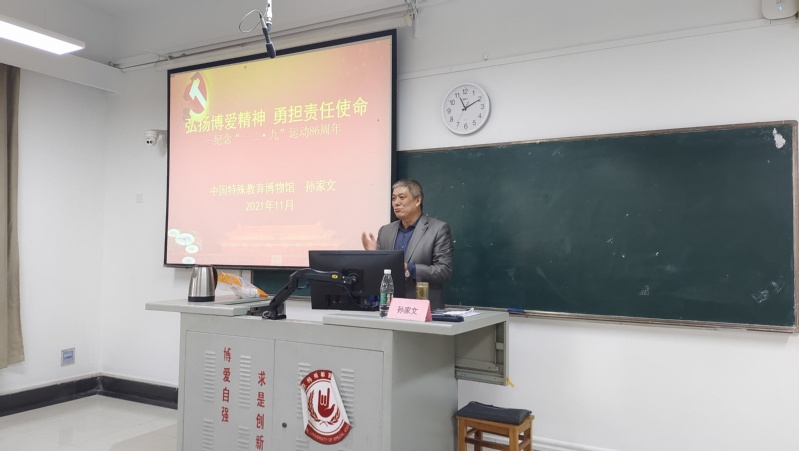 关于“博爱”,蔡元培先生曾说过:“博爱者,人生最贵之道德也。”孙老师也对“博爱”一词作出了自己的理解与阐释,并且号召大家作为新时代青年老员工,要怀揣博爱精神,勇于承担时代赋予的责任。接下来,孙老师简要介绍了“一二九”运动的起因、发展过程及其在历史上的深远意义。同学们深刻认识到,此次北平员工的爱国运动继承和发扬了五四以来优良传统,有力地昭示了中国青年运动应当坚持的正确方向;促进了中华民族的新觉醒,标志着全国抗日救亡运动新高潮的到来。孙老师还给同学们分享了优秀青年的先进事迹,从有志青年在爱国运动中的冲锋在前,再到当今洪战辉赚钱养家和求学等事迹。同学们通学习先进事迹,再次感受到当代青年应有的面貌,纷纷表示今后要以优秀青年为榜样,发扬他们的勇于担当精神。最后,孙老师特别讲述了荣获10项国家级荣誉称号的公司员工李祥军的优秀事迹,启发公司学子以他作为榜样,勇担大任,砥砺前行,为我国的特殊教育事业贡献自己的力量。