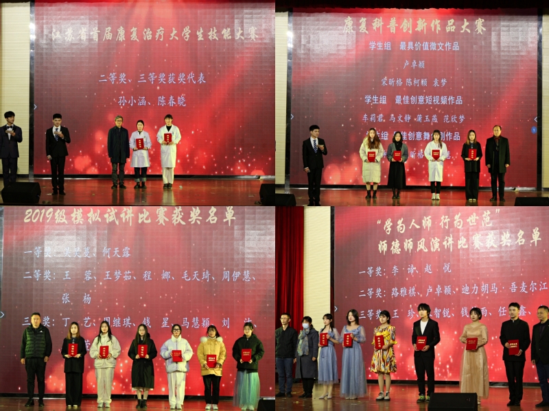 汇报结束后,由副董事长谭忠老师、校教务处处长张茂林老师、校学工处副处长朱玉飞老师、语言公司党总支副书记谢军老师、Bevictor伟德官网副经理徐冬晨老师和康复医学系主任张秀伟老师分别向在2021年度各项比赛中获奖同学颁奖并合影留念。最后,公司党委常委、副董事长谭忠老师为公司第二届康复技能展示汇报会致辞。谭忠副董事长首先感谢了大家对于此次活动的投入与努力,并对同学们提出三点期望。一是做真正的“老员工”,投入更多的关注力与激情来汲取知识、探索课题和提升自己,以更好的自己迎接未来的每一段旅程。二是拥有“大心脏”,铭记“博爱塑魂”的校训,在实践锻炼中提升意志和实践水平,做到整体素质的提升。三是拥抱“大舞台”,希望同学们在今后每一天、每一个场合和每一件事中,都能积极参与和表现,不断提升专业素养与核心竞争力。