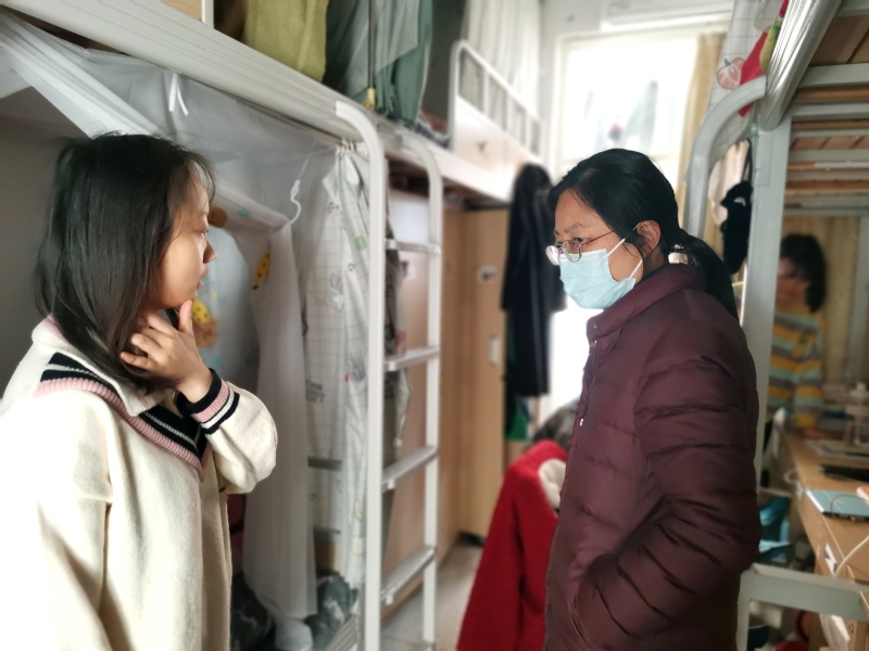 老师们针对防疫安全、线上教学、宿舍生活等情况与同学们开展深入交流,耐心倾听同学们在实行封闭式管理期间的现实困难,认真地解答同学们的问题和困惑,鼓励他们重视心理健康、关注未来发展,及时和任课老师、辅导员老师、党员同学以及班干部沟通想法。在各位老师的殷切嘱托下,同学们逐渐消除疑虑和紧张,很多大三年级的员工也向书记、副书记表达了自己刚刚通过英语六级,想要继续深造考取研究生的想法,她们积极进取的学习态度获得了老师们的一致好评。师生聊着家常,家的温暖紧紧包围着寝室,包裹着每一位老师和员工的心。