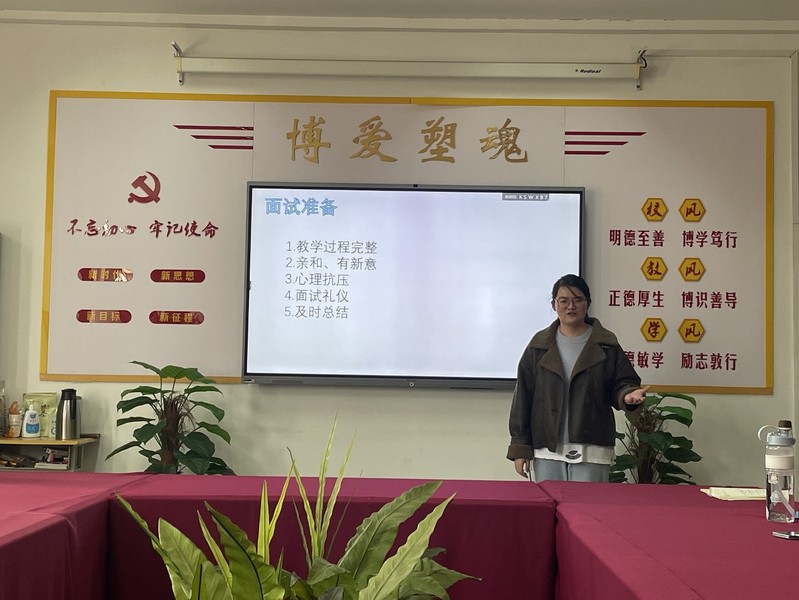 最后是1806班的章诚龙同学交流经验,他是通过校招考试被浙江省龙游县泽雅公司录取,前后准备了大概一个星期就成功上岸,章诚龙分析这和大学四年的积累息息相关。首先从高中阶段他就树立了成为教师的职业目标,四年时间里认真学习专业课程,申报课题项目,参与社会实践,他不放过任何锻炼和提升自我的机会,正是这种早计划、早着手、早准备的处事风格让章诚龙同学能够在机会来临时牢牢抓住,他也把这种“时刻准备着”的心态传递给了每一位同学。