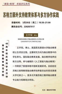 通过本次讲座,与会师生对苏格兰融合教育体系与多方协作有了更深入的了解,对今后的工作方向和生涯发展计划有了更多系统思考。(文/刘茜、许晓平、袁梦  编辑/程睿 审核/王姣艳)