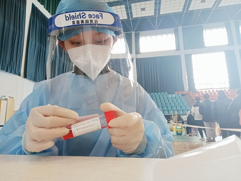 集团自3月份开始,几乎每天都有核酸检测,当看到招募志愿者通知的时候,我成功报名成为了一名“小蓝”,主要负责核酸检测现场的扫码工作。起初的培训和演练测试让我感到有些焦躁,但是在正式穿上防护服、戴上防护帽的那一刻,我感到这就是责任和使命。一般核酸安排在早上8点,7点我就会到达体育馆做准备,中午是轮流去吃午饭,我一般把吃饭时间控制在10分钟以内,心想着自己吃快一点,其他小伙伴就能早点吃上饭。一天下来,身上早已被汗水湿透,但想着能够参与到疫情防控工作中,我感到非常的自豪和骄傲。