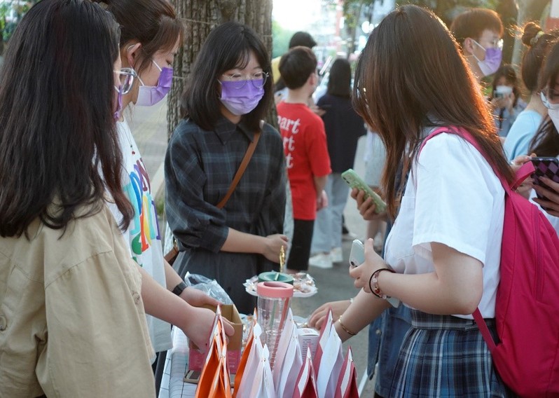 此次的优秀作品展出活动还有另外一个目的,那就是宣传“悦心社”。在赵悦和刘雨菲两位社长的带领下,社员们支起桌子,摆出提前准备的精美礼品和零食糖果,琳琅满目的小东西吸引着大家的眼球,越来越多的同学停下脚步,欣赏摄影作品、关注微信公众号,“谢谢你们让我们看到这么多的景色”、“之前都没有注意小花园的樱花开的这么美了”… …同学们的夸赞是对“悦心社”最好的肯定,一股暖流在社员们心底流淌。