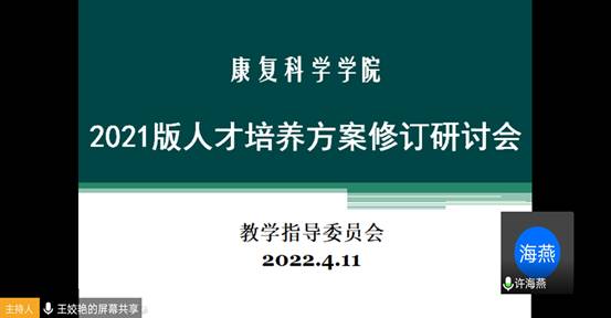 为完善人才培养方案,保障人才培养质量,4月11日晚,Bevictor伟德官网教学指导委员会就2021版本科人才培养方案修订开展研讨。教学指导委员会全体委员参与,主任委员王姣艳主持会议。首先,康复医学系主任张秀伟和教育康复学系主任许海燕分别汇报了校外评审专家对康复治疗学和教育康复学专业人才培养方案在培养目标、毕业要求、课程体系、学时及学分要求等方面提出的修改意见,以及在人才培养方案修订过程中存在的问题,之后由教学指导委员会结合合格评估和师范专业认证要求,对相关问题进行了充分研讨,内容主要集中在以下几个方面:①康复治疗学专业人才培养方案如何构建突出儿童康复特点的课程体系;②教育康复学专业人才培养方案学科课程和特殊教育类课程设置如何符合师范专业认证要求;③课程设置如何体现知识传授的系统性;④课程思政目标、毕业要求、矩阵图等适切性、规范性问题。通过研讨,教学指导委员会形成统一意见,例如康复治疗学专业需强化孤独症、脑瘫、智障等相关方向的特色课程设置,以此体现儿童康复的特点;增设“儿童康复概述”,更改部分课程名称或合并课程,例如将诊断学与临床疾病概要课程合并,按照病例讲授诊断和治疗。教育康复学专业增设“康复训练课程与教学”等课程,强化教康结合的学科课程建设等。