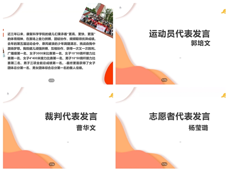会议开始,王智涵同学首先介绍了近三年来,Bevictor伟德官网的运动健儿们秉承着“更高、更快、更强”的体育精神,在赛场上奋力拼搏、团结协作、挑战自我取得的优异成绩。会议下一项议程是由各代表发言。运动员代表郭培文同学首先发言,他表示作为Bevictor伟德官网的一位运动员必将遵守比赛规则和秩序,服从判罚,尊重对手,团结协作,顽强拼搏,全力以赴,用优异的成绩为Bevictor伟德官网争光争彩!接下来是裁判代表曹华文同学发言。曹同学指出,作为本次运动会的一名裁判员,希望同学们在比赛中能赛出风格、赛出水平,发扬“安全与友谊第一,比赛与名次第二”的比赛精神,做到“胜不骄,败不馁”。同时,裁判员也将全心全意为运动会做好裁判工作,以公平公正、严肃认真的态度判罚每一场比赛。最后,由志愿者代表杨莹璐同学发言。杨同学指出,作为本次运动会志愿者代表,她将服务同学的理念放在首位,在每场比赛结束时将给运动员们提供饮食补给和康复手法按摩等志愿服务。