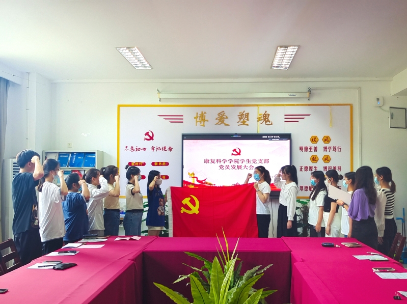 大会最后,在员工党员陈琦的带领下,新入党同学对着党旗进行了庄严的入党宣誓。