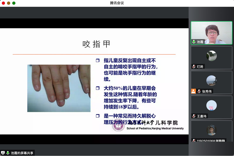 池霞教授为康复学子详细讲解了儿童常见心理行为问题以及如何干预,包括咬指甲、习惯性交叉擦腿和发育迟缓、ASD、ADHD的常见问题与表现以及干预方法。池霞教授在讲座中融合了自己多年丰富的临床经验,趣味性强,员工们都听得聚精会神。