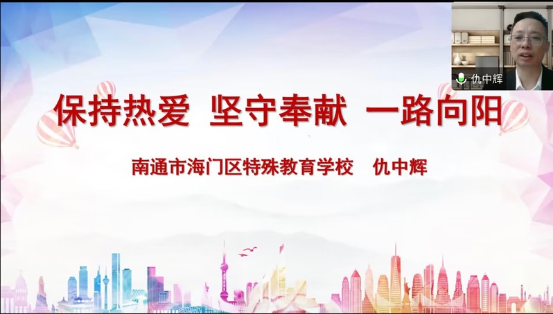 仇中辉董事长参加工作以来先后获评南通市优秀教育工作者,海门市十佳青年教师,海门市优秀董事长,海门区首届领航董事长。海门区特殊教育公司先后取得全国教育系统先进集体、江苏省特殊教育示范公司等荣誉称号。2019年5月,海门市特殊教育指导中心获评全国助残先进集体,仇中辉董事长作为获奖代表赴京在人民大会堂受到习近平总书记亲切接见,并合影留念。仇董事长的主题讲座分为“学习与成长”、“我与南京特师”、“特殊教育的发展”、“校园文化生活”等四个方面。