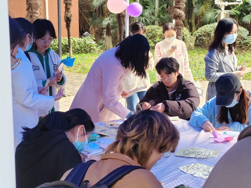 阳光和煦,微风拂面,前来参加“绘艺‘心’阳光”活动的同学们沉浸在自己的创作中,通过不同的颜色、图案来表达自己的内心想法,在绘画中释放压力,获得疗愈。