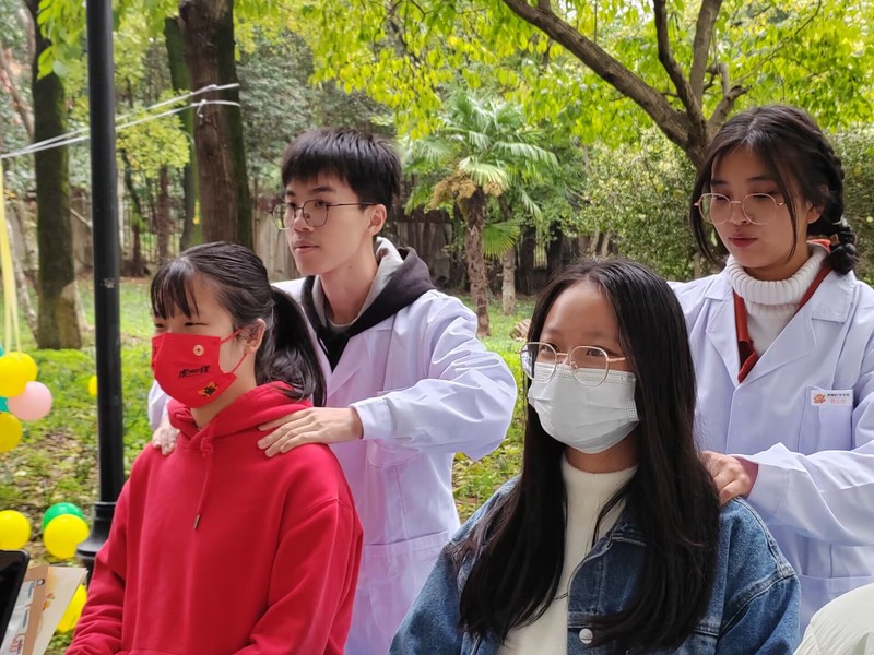 活动现场,“按走大鸭梨”按摩体验活动也受到了大家的热烈欢迎。来自康复手法协会的同学们根据参加活动员工的不同症状,有针对性地为大家按摩穴位、放松肩颈,同时向他们普及健康养生小知识,教授简单实用的按摩放松技巧。“平常上课、写作业都不太注意姿势,经常会肩膀酸疼。今天体验了专业康复技法,肩膀非常舒适。“体验后,同学们连连称赞。