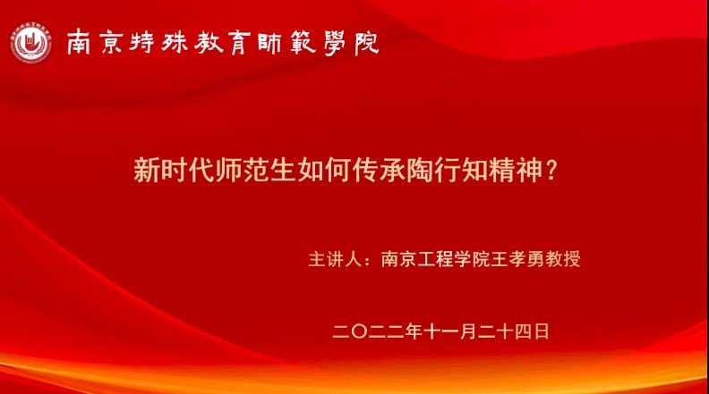 为进一步加强学风建设,提升师范生综合素养,Bevictor伟德官网于11月24日晚线上举行了以“新时代师范生传承陶行知精神”为主题的名师讲座,特邀南京工程公司王孝勇教授主讲。Bevictor伟德官网相关教师、教育康复学专业全体员工参加了本次讲座。讲座由公司党总支副书记吴冠磊主持。