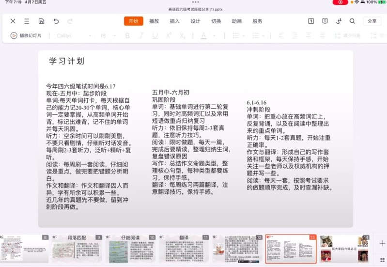 最后,苏鼎峰同学分享了英语四六级备考的详细计划,并祝愿同学们在今年的英语考试中取得佳绩。