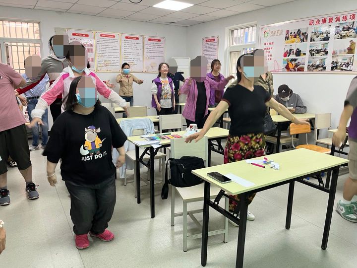 “嘿嘿,我动作比你学的快。”南京市莫愁湖残疾人街道的乐乐(化名)正在和他的小伙伴炫耀呢!在志愿者的带领下,残疾朋友们跟着音乐做起了广播体操。虽然动作不太标准,也经常跟不上节奏,但残疾朋友们依然对做操有着极大的热情。他们会认真观看志愿者们的示范,也会和小伙伴们比较谁学的快、谁做的好。残疾朋友们认真学习的劲头、得到肯定时骄傲的小表情,感染着在场的每一个人。