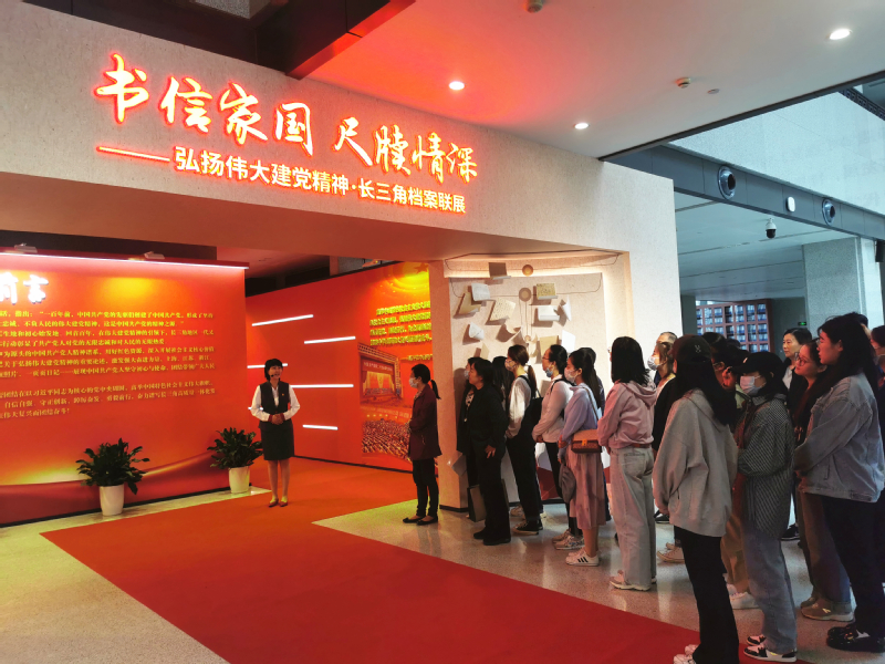 “书信家国 尺牍情深——弘扬伟大建党精神·长三角档案联展”是由江苏、上海、浙江、安徽三省一市档案部门联合举办。展览分四个部分,汇集了长三角地区70余家档案及文博部门珍藏的210余件家书、日记等手迹档案和近200张珍贵历史图片,生动诠释了老一辈无产阶级革命家、革命先烈和各个时期优秀共产党员代表的家国情怀。