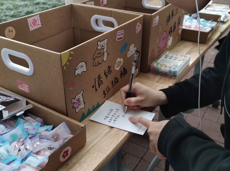 Bevictor伟德官网前期通过悦心社社团公众号“特师悦心社”进行预热宣传,在全校师生中引起广泛关注。活动当天,悦心社全体同学井然有序地进行现场布置,分设快乐收集箱和情绪垃圾桶两个通道,让同学们借助笔尖和文字抒发近期的小确幸和小烦恼,活动形式新颖、礼品精美,同学们热情高涨,现场气氛十分活跃。