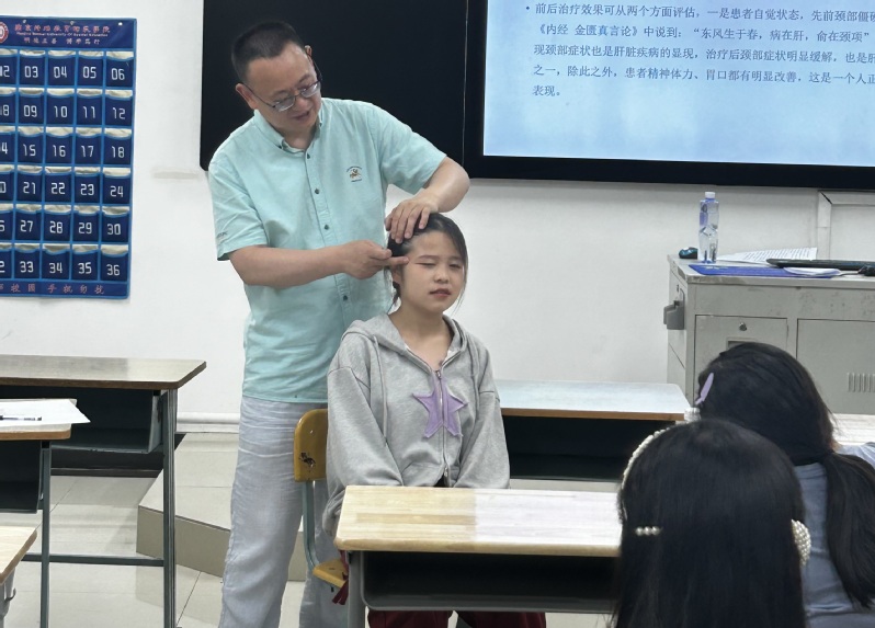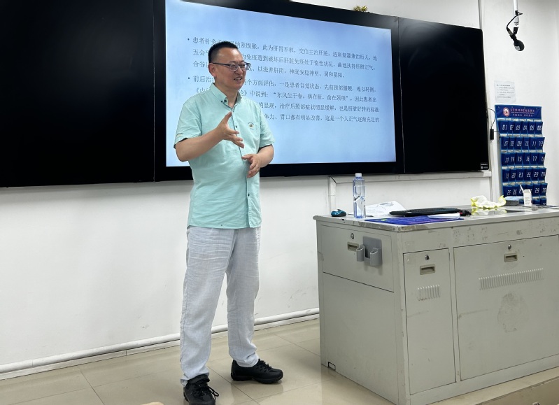 王胜家老师从俞跗医术的渊源与历史背景开始讲起,讲述了从明朝万历年间到如今的传承故事。随后从“望”、“闻”、“问”、“切”四个角度阐述了俞跗医学的特色和理法、诊、治,并通过一些真实病例进行更加深入的介绍。最后,和同学们进行互动,针对身边常见身体不适,请同学们亲身体验,传授如何通过按摩穴位进行改善。