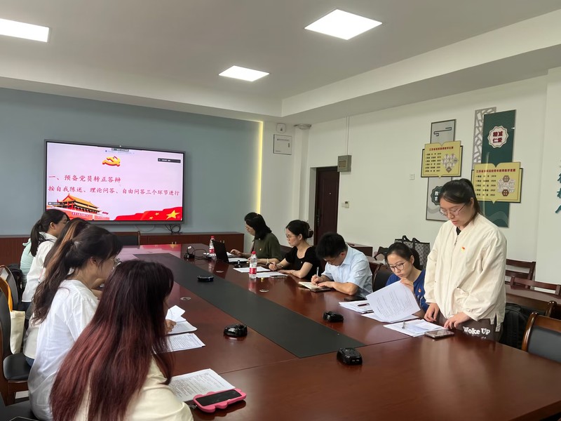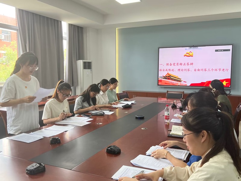 预备党员转正采用转正答辩制,从自我陈述、理论问答、自由问答三个环节严格按照党员发展的程序进行。8名预备党员依次陈述了自己在预备期间的思想、学习和工作情况,在理论问答环节和自由提问环节均能做出较好的回答。