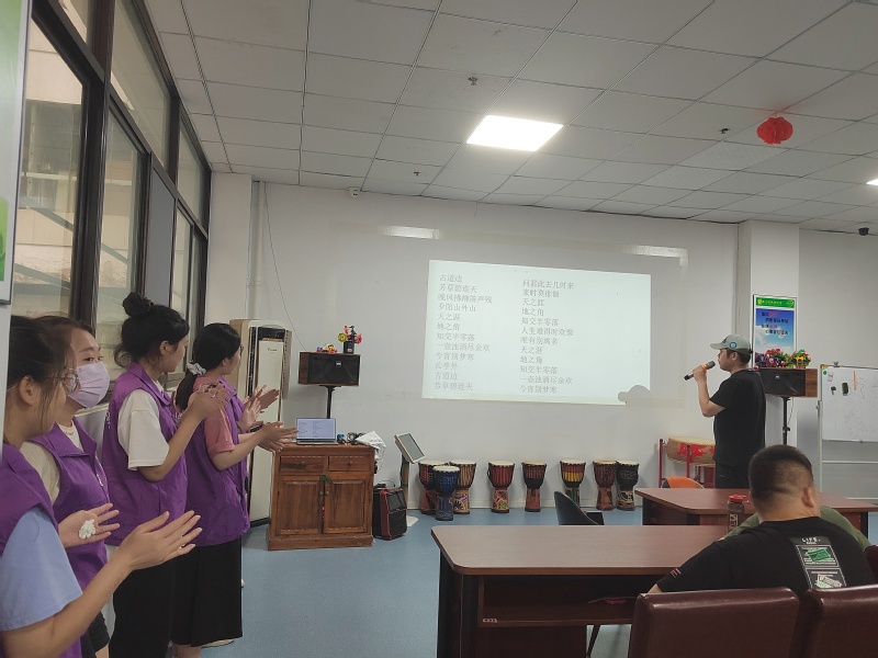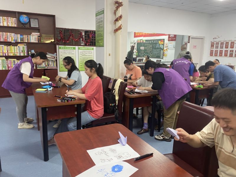 在社会实践活动中,团队成员带领精神障碍患者朋友们一起唱手语版国歌,做早操,学折纸,游览古林公园。在活动中,精神障碍患者朋友们认真的表情,开心的笑脸,让团队成员们十分感动。在最后一天的实践活动中,学员们把爱都写进了贺卡中,表达对志愿者和机构社工们的感谢之情。