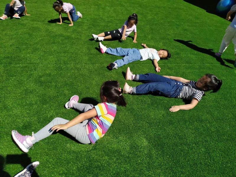 接着,团队成员们带领小朋友们开展了“过草地”体验活动。小朋友们精神抖擞,跃跃欲试,在草地上匍匐前行,体会红军不怕困难、顽强奋战的长征精神。