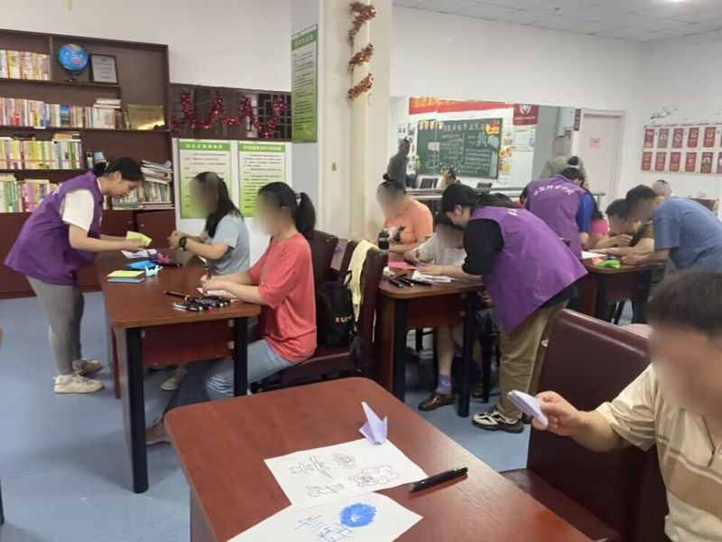 接着是折纸环节。团队成员们首先介绍了折纸的方法和技巧,接着手把手指导精神障碍患者朋友们进行折纸。一张小小的纸,有着万般变化。很快,精神障碍患者朋友们就完成了自己的作品,千纸鹤、小青蛙、小鸭子,栩栩如生,十分可爱。最后,他们用优美的歌声为本次活动画上圆满的句号。