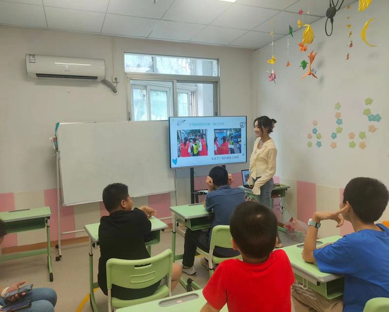 “红星闪耀·星火追忆”志愿者王鑫妮在南京“魔方城儿童发展中心”教特殊儿童认识国旗。王鑫妮同学根据孩子们的理解能力,设计了游戏互动环节,让孩子们积极参与到活动中,加深对国旗的认识。本次活动在孩子们的心中埋下了一颗爱国的种子,让孩子们从小萌发了热爱祖国的情感。