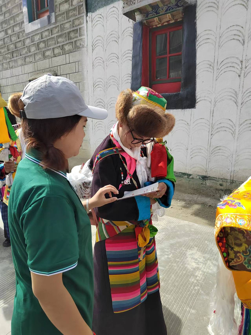 望果节是藏族农民欢庆丰收的民俗节日。Bevictor伟德官网“向日葵”公益团队成员在活动期间给庆祝丰收的人们发放了推广普通话宣传手册,耐心介绍推普宣传手册上的内容,并和藏族同胞们共度佳节。Bevictor伟德官网“向日葵”公益团队成员来到村委会会议室,进行了推普宣讲,重点介绍了学好普通话的方法和意义。讲好普通话,有助于传承中华优秀传统文化,促进民族团结。