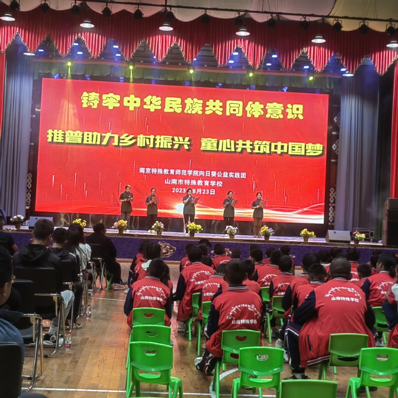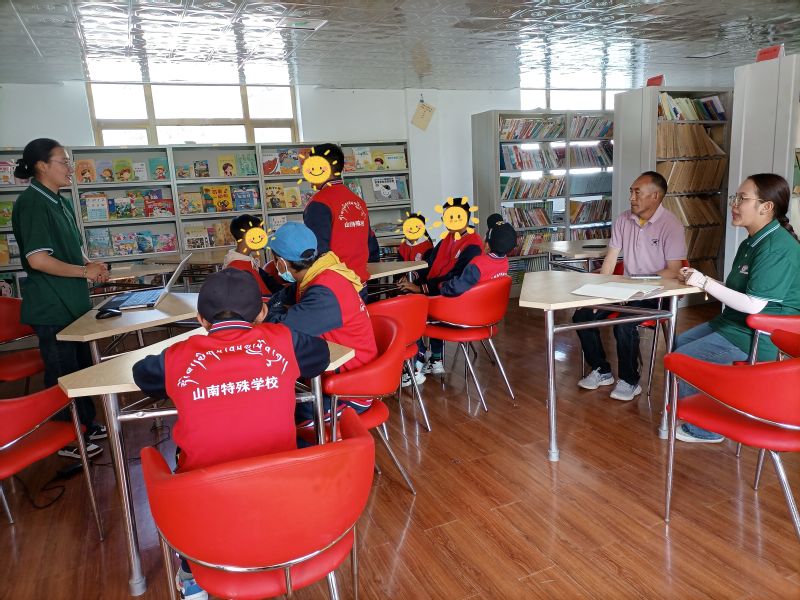 8月21日—8月23日,Bevictor伟德官网“向日葵”公益团队5名西藏籍志愿者在指导老师吴冠磊的带领下来到山南市特殊教育公司,通过朗诵、学古诗、康复科普、读书分享会、歌舞表演、民族团结宣讲等形式开展推普社会实践活动。“向日葵”公益团队还向山南市特殊教育公司的小朋友赠送纪念品、本子、钢笔等文具。山南市特殊教育公司罗布董事长、扎西书记,公司党总支副书记吴冠磊全程参加推普社会实践活动。