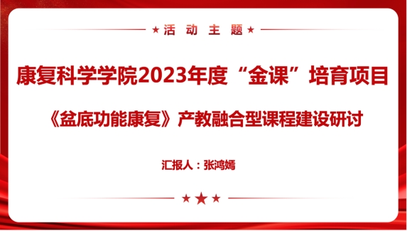之后,课程负责人张鸿嫣老师详细汇报了《盆底功能康复》产教融合型课程的建设背景、目的、意义和内容。与会专家及各位老师对课程建设内容进行研讨交流,提出了详实的具有建设性、指导性的意见和建议,最终形成专家论证意见。