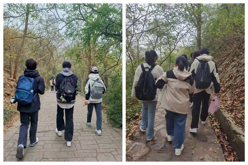活动当天,同学们准时到达山脚下的白马公园集合。甩甩手,伸伸胳膊,踢踢腿,在公司学工办主任(团总支书记)王雪梅老师的带领下,同学们做起了热身准备工作。随后,全体成员沿着登山步道一起向山顶出发,一路欢声笑语。登山路陡峭,既考验了同学们的身体素质,又体现了团队之间的默契与协作能力。天气阴冷,大家相互鼓励,最终一同登顶紫金山,欣赏到了壮丽的山景。