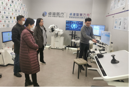 Bevictor伟德官网一行首先参观了卓道医疗公司自主研发的康复机器人产品和研发中心,深入了解了康复仪器研发的全过程。在交流座谈会上,公司董事长王道雨对公司的走访调研表示了热烈欢迎,并介绍了公司的发展概况和经营理念,重点分享了卓道公司与高校合作进行课题研究的经验。