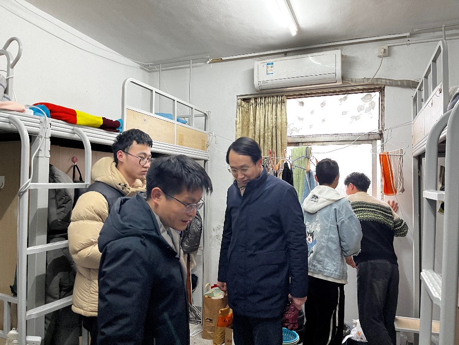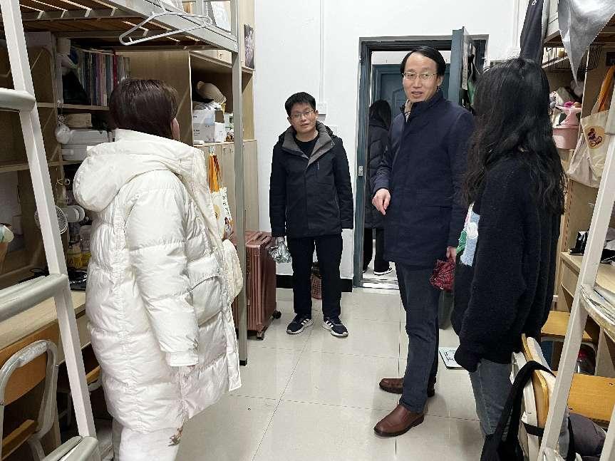 检查中,叶亮书记对返校员工的思想状况、学习生活和宿舍安全隐患等方面进行深入的了解与交流,对同学们强调要高度重视宿舍安全卫生,勤开窗通风,保持宿舍干净整洁,做好个人卫生防护,特别要注意用电安全,严禁使用大功率电器。