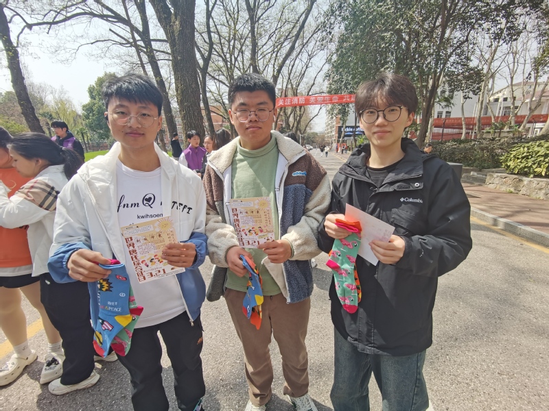 为了呼吁更多的同学关注唐氏综合征,Bevictor伟德官网发起了“穿很多双袜子”的活动。“通常,我们认为袜子是成对的,是一样的。穿两只不一样的袜子被认为是怪异的。我们经常把‘唐宝宝’看作是和正常人不一样的,这就是我们的刻板印象。我们号召大家在3月21日穿上不同颜色的袜子,向周围的人介绍‘唐宝宝’,打破刻板印象。”志愿者们向前来参加活动的同学解释道。在了解到袜子背后的深意后,同学们积极参加活动,准备的100双袜子就分发完毕。在3月21日,我们收到了同学们穿着不同颜色袜子的图片,感受到了同学们对“唐宝宝”的支持和理解。