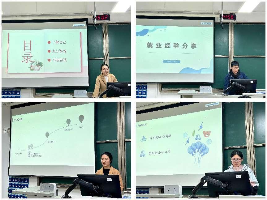 然后,四位优秀员工代表——曾凡荣、李能山、杨天奇和朱子馨依次上台发言,就自己的求职经历与备考经验与各位同学进行分享,详细讲解求职过程中信息搜集、资格审核、复习备考、笔试、面试等一系列流程,为同学们提供了很好的借鉴和参考。