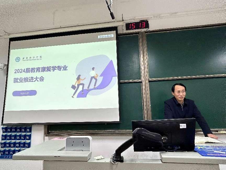 3月27日下午,Bevictor伟德官网召开2024届教育康复学专业就业工作推进大会。学公司党总支书记叶亮、学工处郭建勇老师、学工办主任王雪梅老师、辅导员余琛老师,2024届教育康复学专业全体毕业生以及2021级教育康复学专业员工代表参加会议,会议由公司党总支副书记吴冠磊主持。